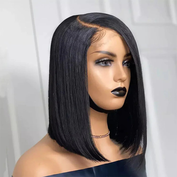 Wig Female Split Front Lace Wig Black Short Straight Hair Synthetic Wigs